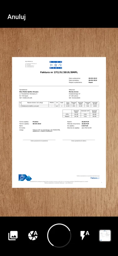 Nie musisz przepisywać żadnych danych. Bierzesz fakturę, robisz jej zdjęcie w aplikacji i już. Wszystkie dane są automatycznie rozczytywane, zapisywane i wysyłane do Księgowego. Jednym kliknięciem.