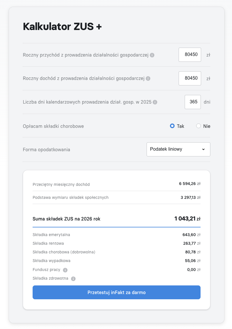 Zastanawiasz się nad skorzystaniem z ulgi? Dla ułatwienia rozliczeń skorzystaj z kalkulatora Mały ZUS Plus oferowanego przez inFakt.