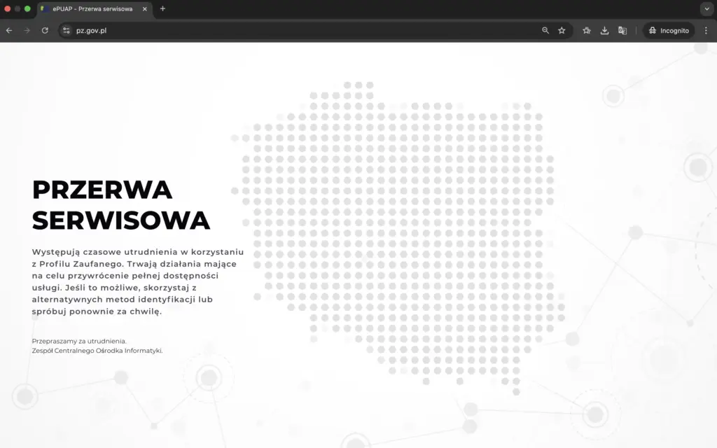 Profil Zaufany znów działa – można zalogować się od usług rządowych. Przed godziną 14:00 przywrócono funkcjonalność Węzła Krajowego.