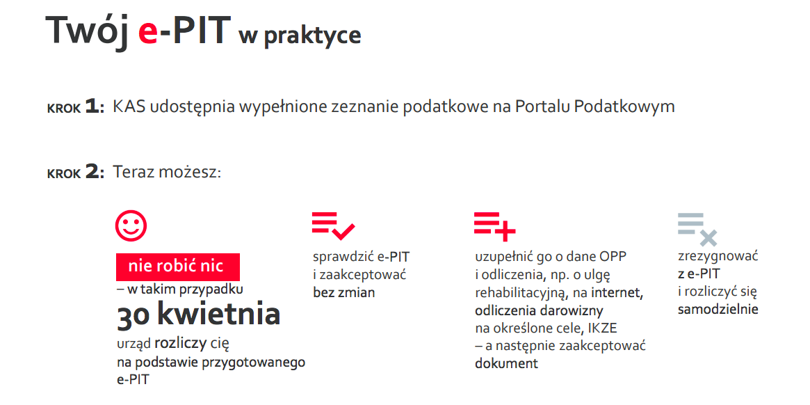 Usługa e-PIT zakłada brak obowiązku sporządzania samodzielnie dwóch rodzajów deklaracji rocznej PIT przez podatników oraz łatwiejszy sposób rozliczania ulg.