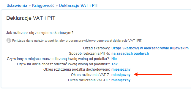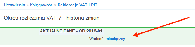 3. W wierszu okres rozliczania VAT-7 kliknij na: miesięczny